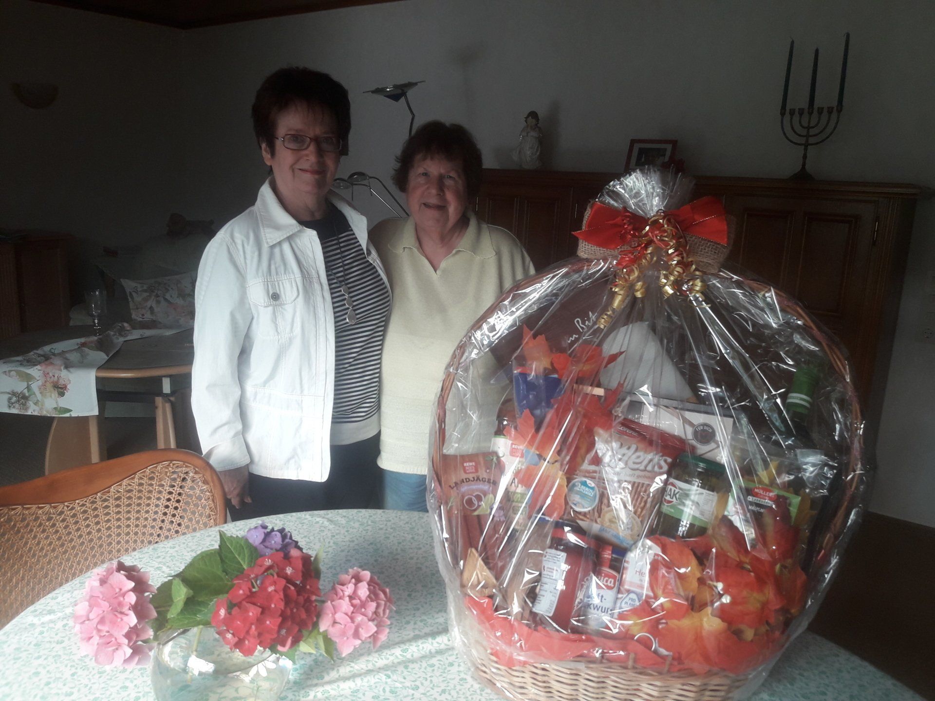 ButtonWir gratulieren an dieser Stelle Erika Goebbels Sie wurde im Juli 2019 80 Jahre alt. Erika ist aktives Mitglied unserer "Bienchen". Im Bild gratuliert unsere Übungsleiterin Monika Lindenlauf.