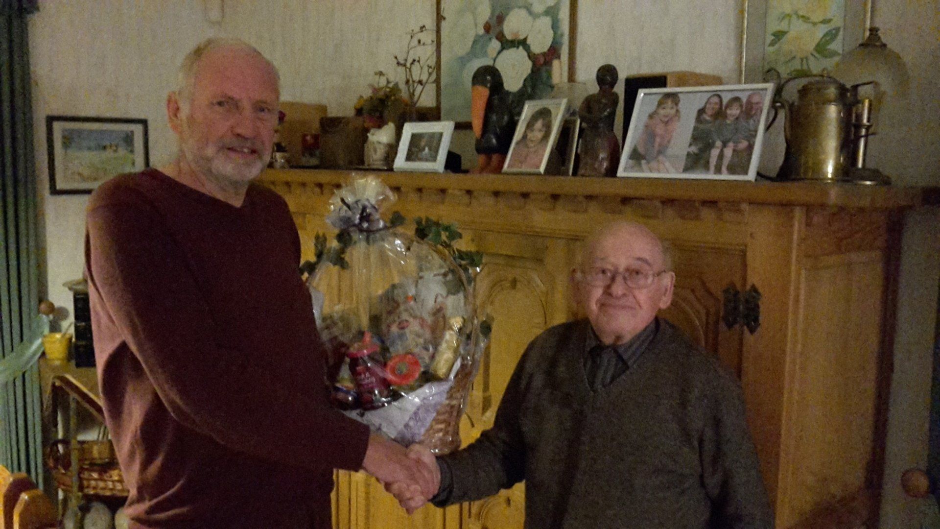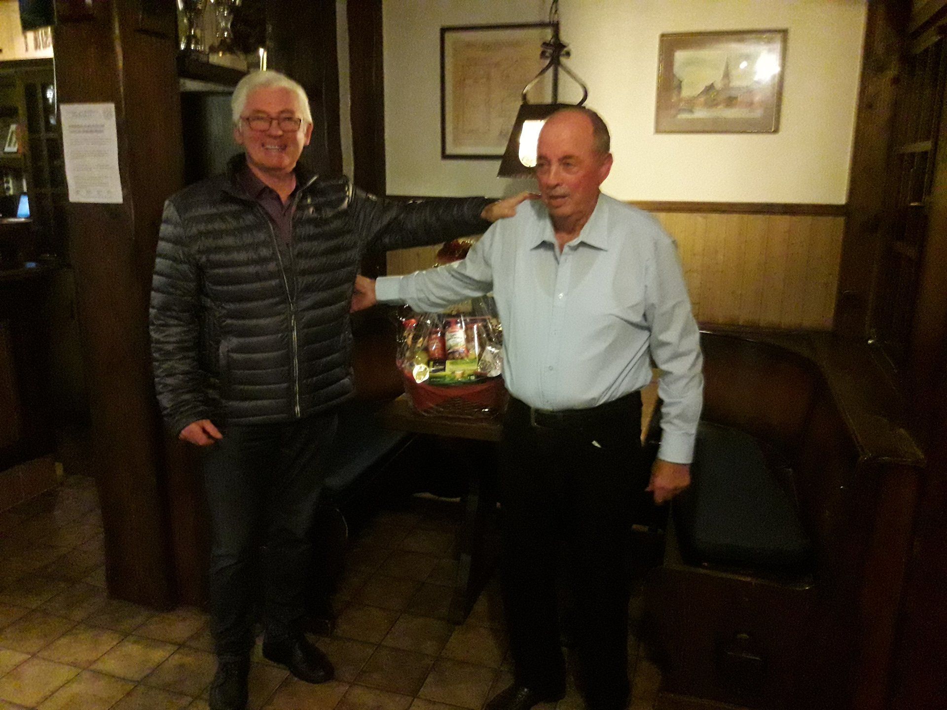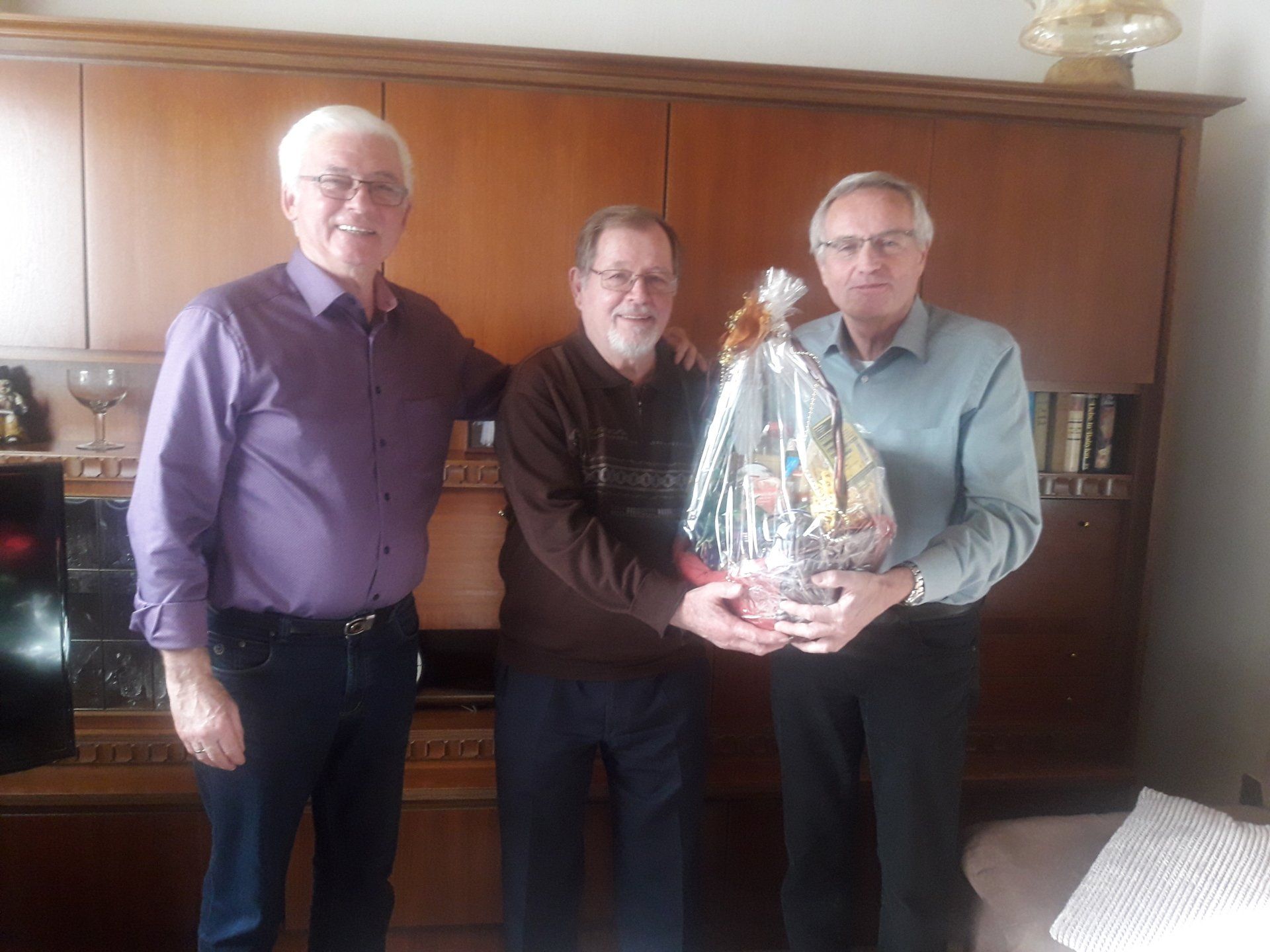 Im Bild gratulieren unser Ehrenvorsitzender Bert Lindenlauf und der Vorsitzende Frajo Conen das Ehrenmitglied Theo Schläger zum 80. Geburtstag im Februar 2020.