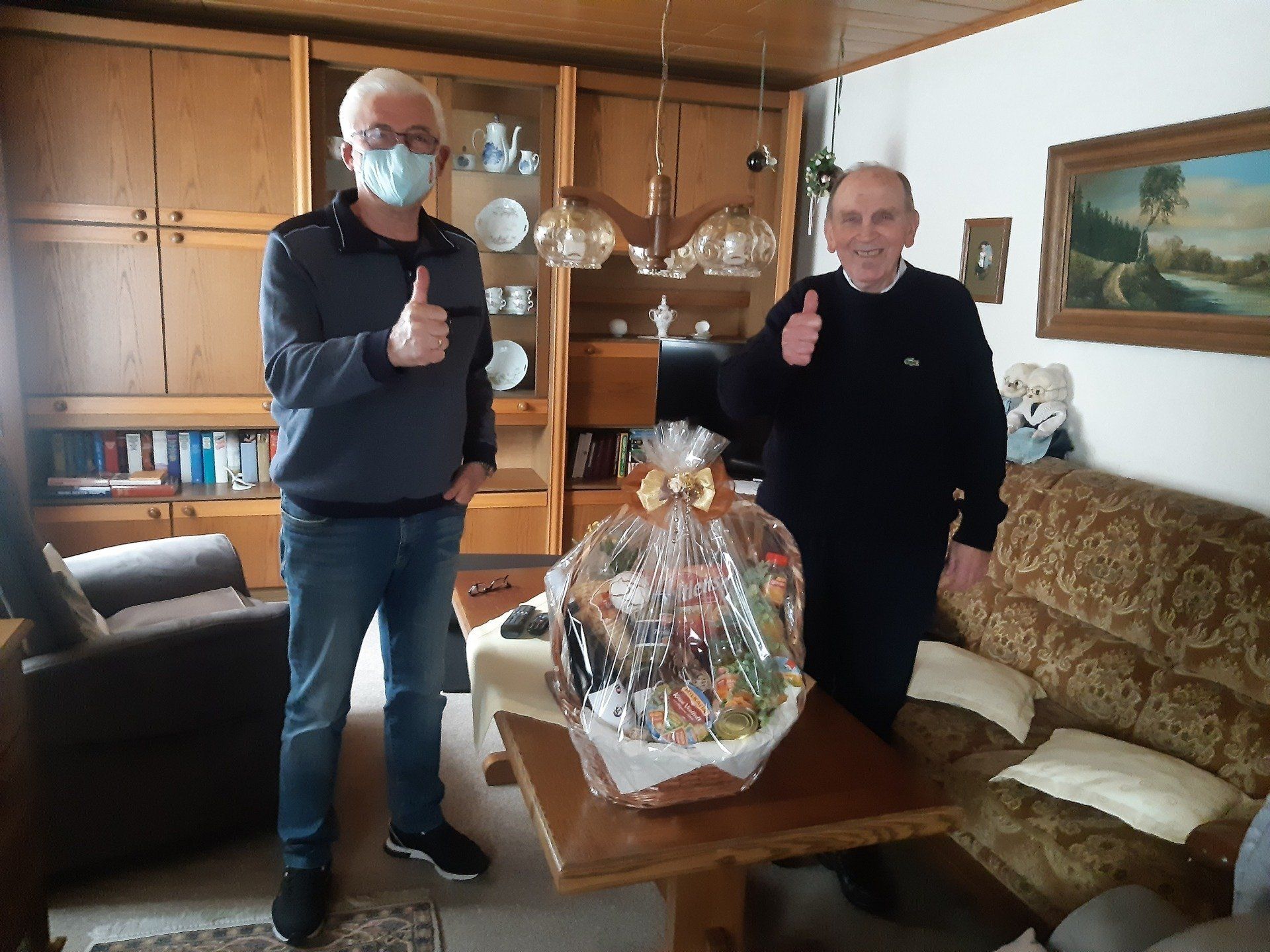 Corona bedingt eingeschränkt feierte unser Ehrenmitglied Peter Küpper im November seinen 80. Geburtstag. Im Bild gratuliert unser Ehrenvorsitzender Bert Lindenlauf.