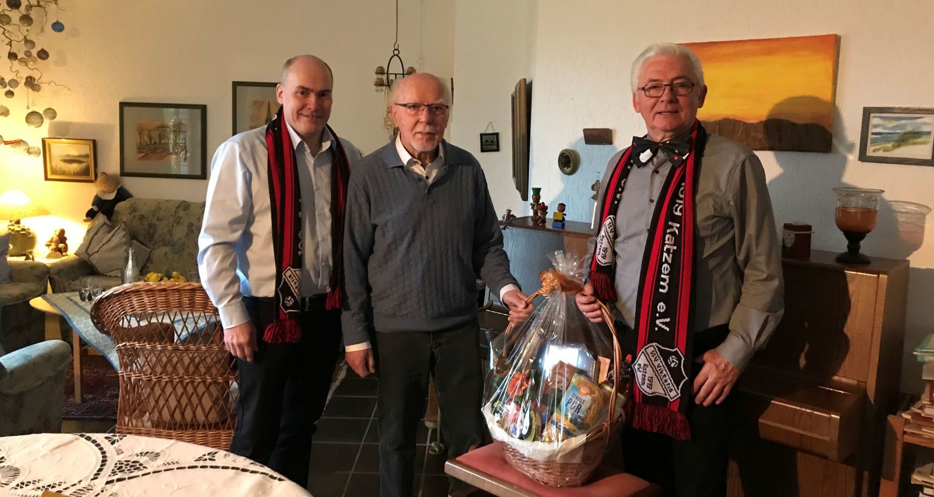Im Bild gratulieren unser Ehrenvorsitzender Bert Lindenlauf und der Vorsitzende Frajo Conen das Ehrenmitglied Theo Schläger zum 80. Geburtstag im Februar 2020.